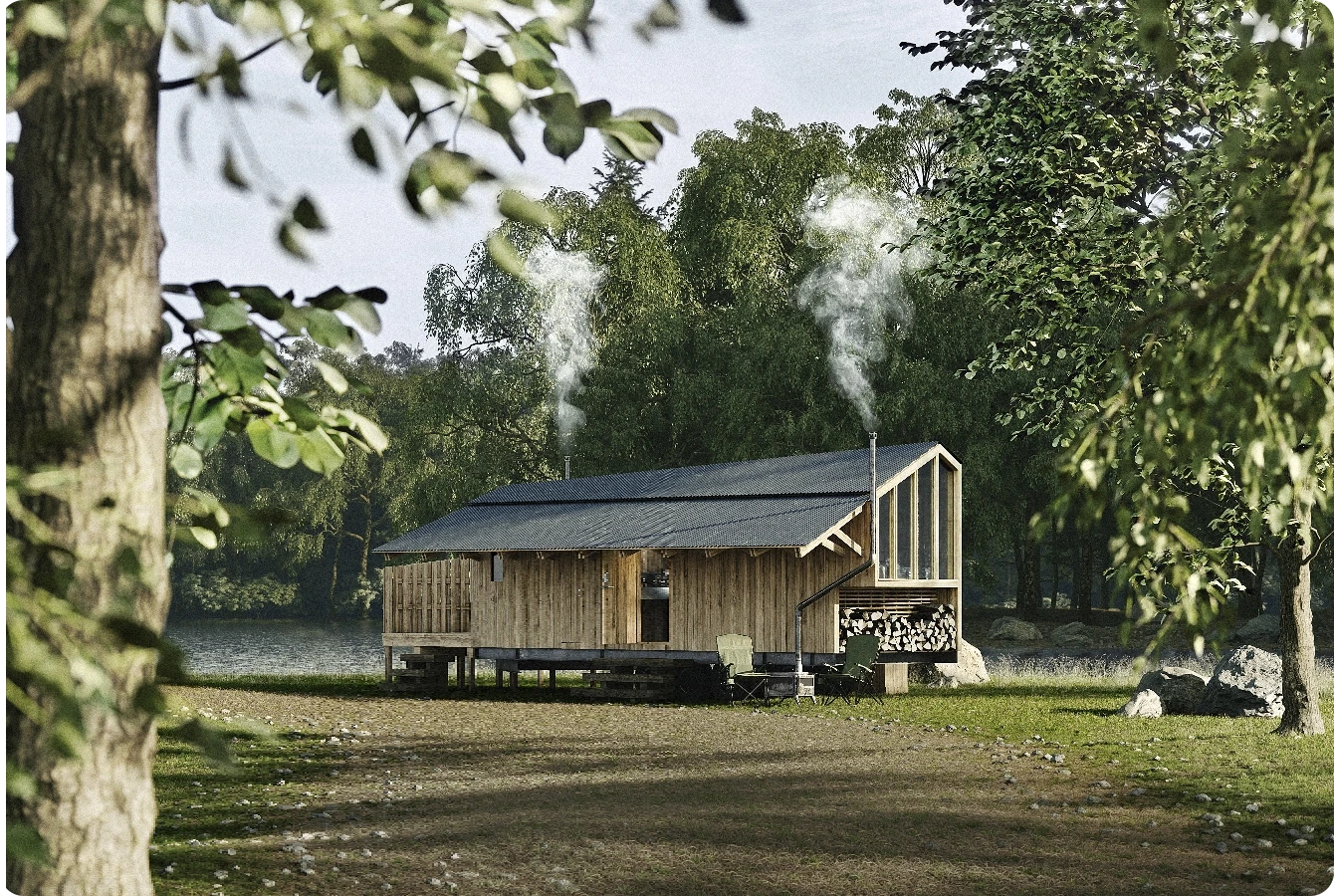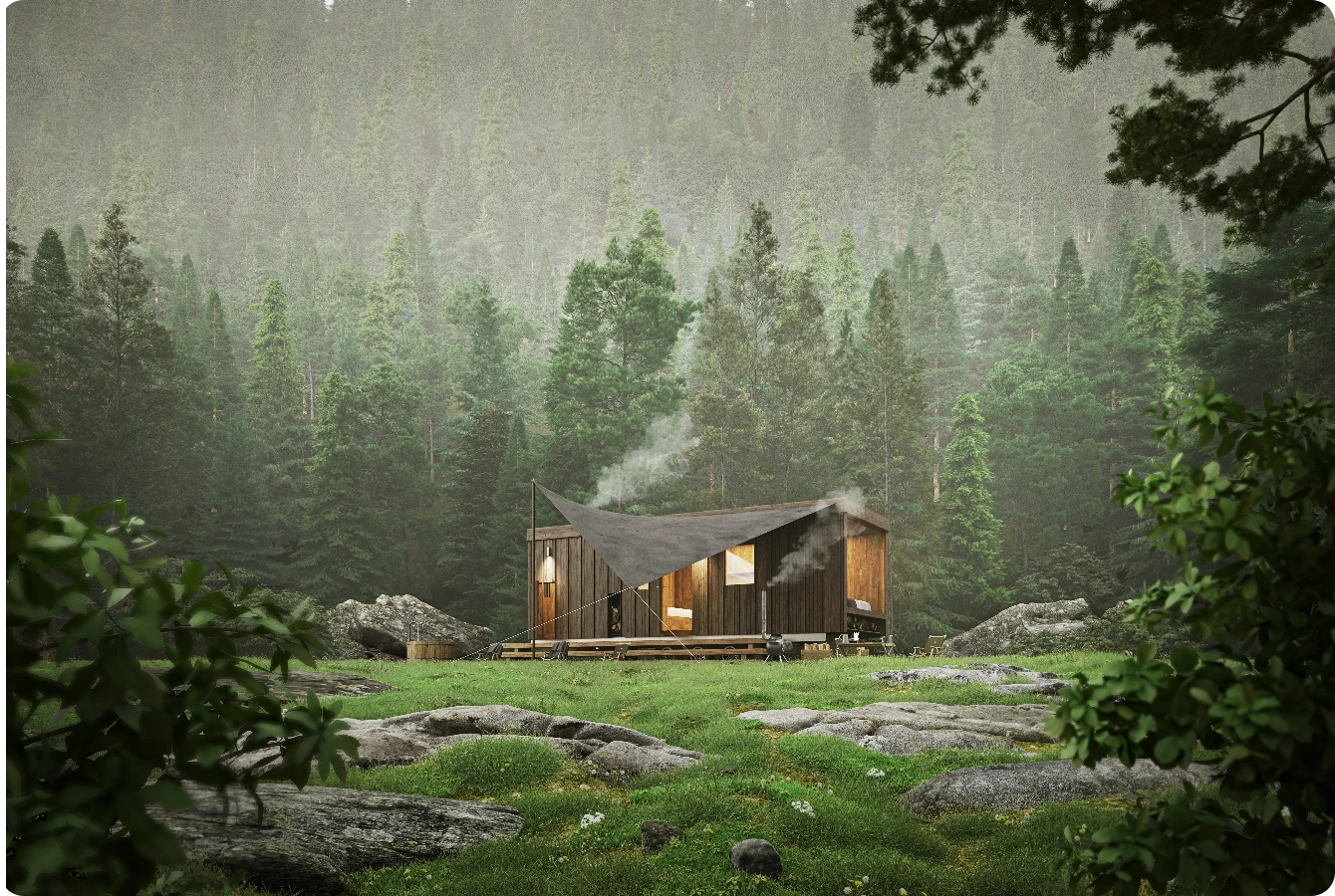 山小屋を思わせるシルエット。