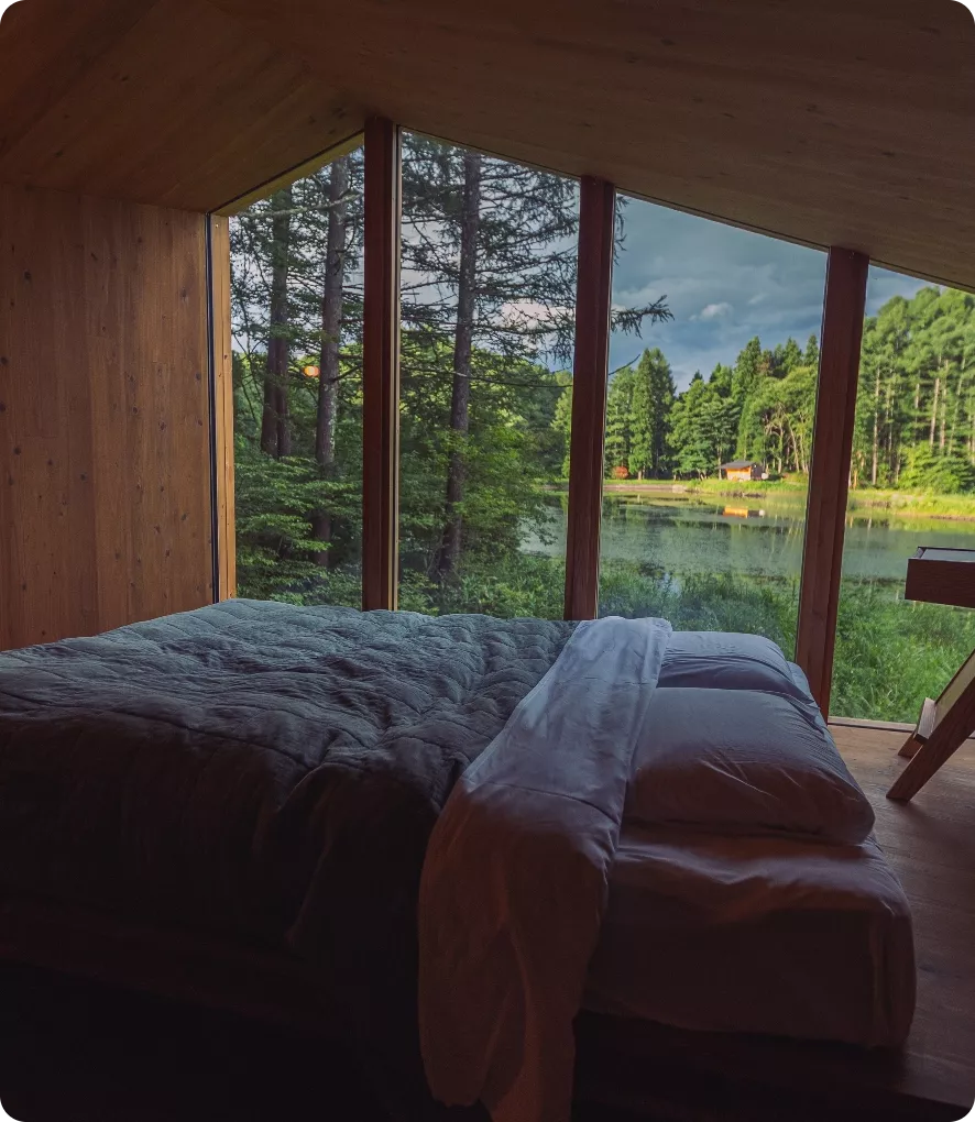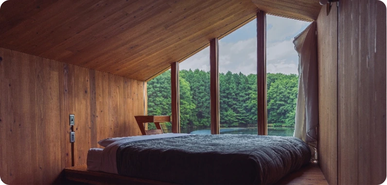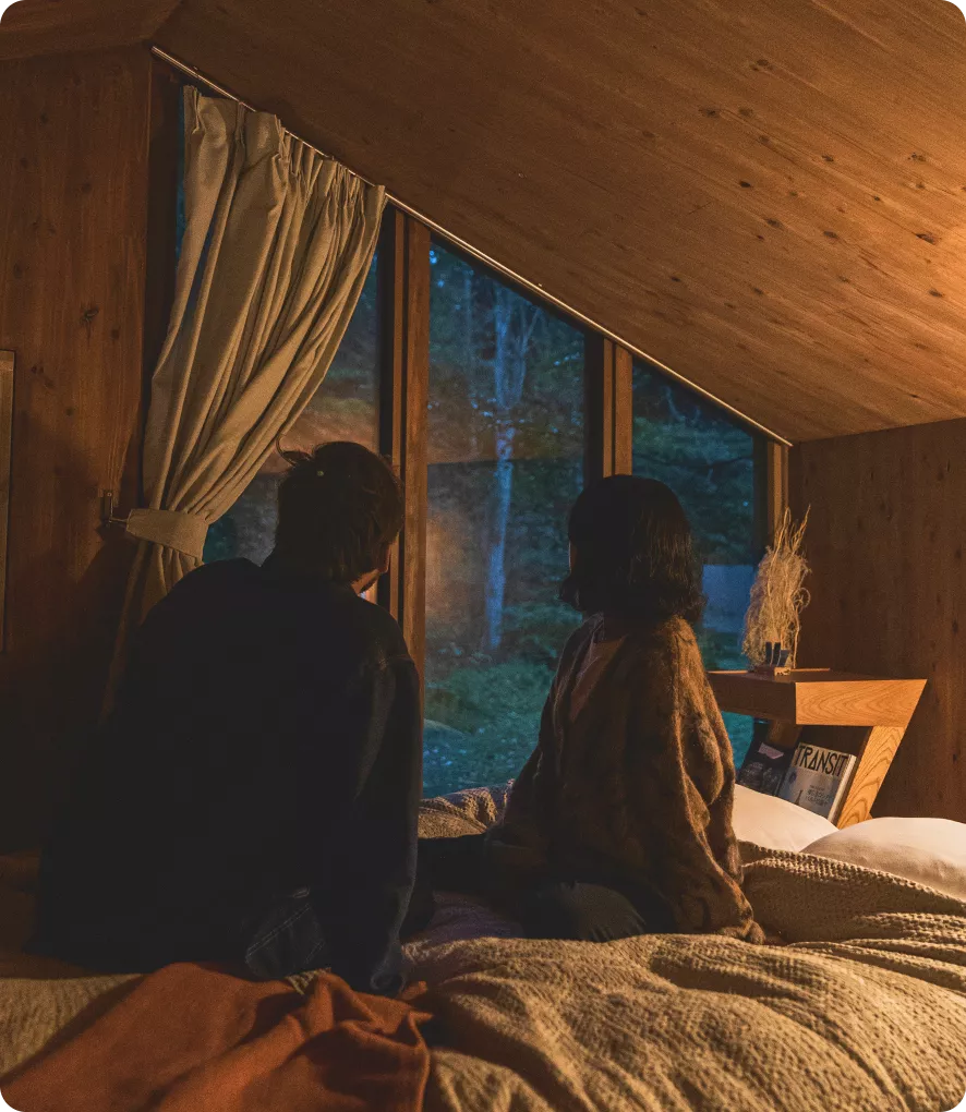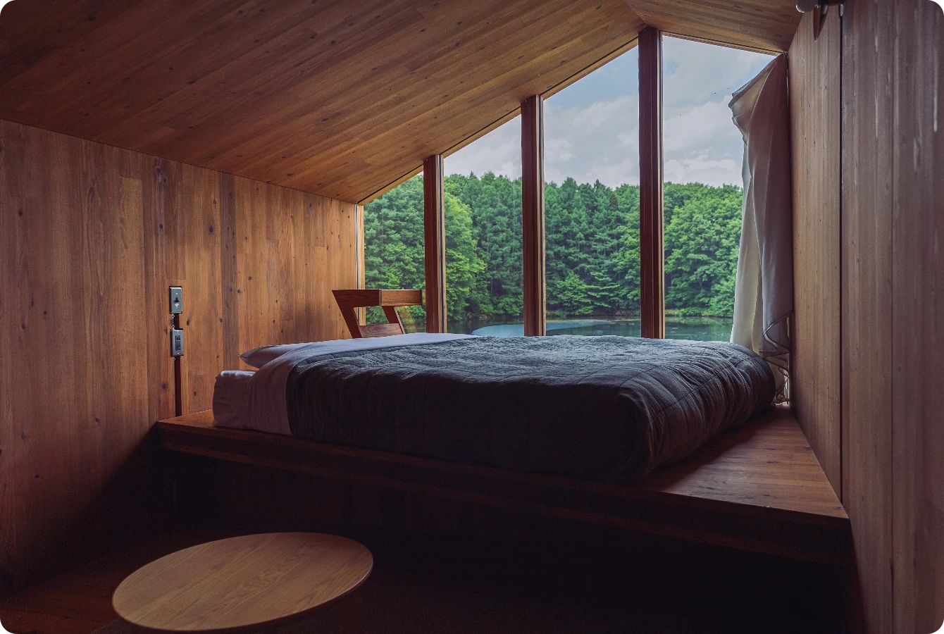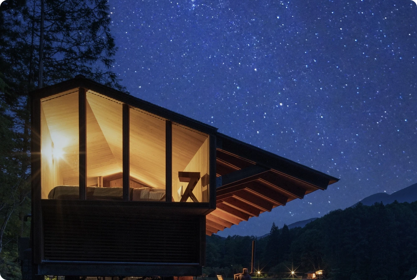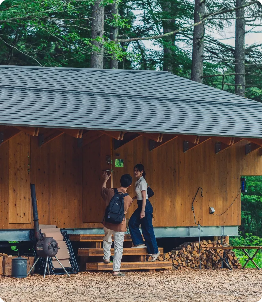 客棟はHut、Cave(白樺湖のみ)の2タイプございます。