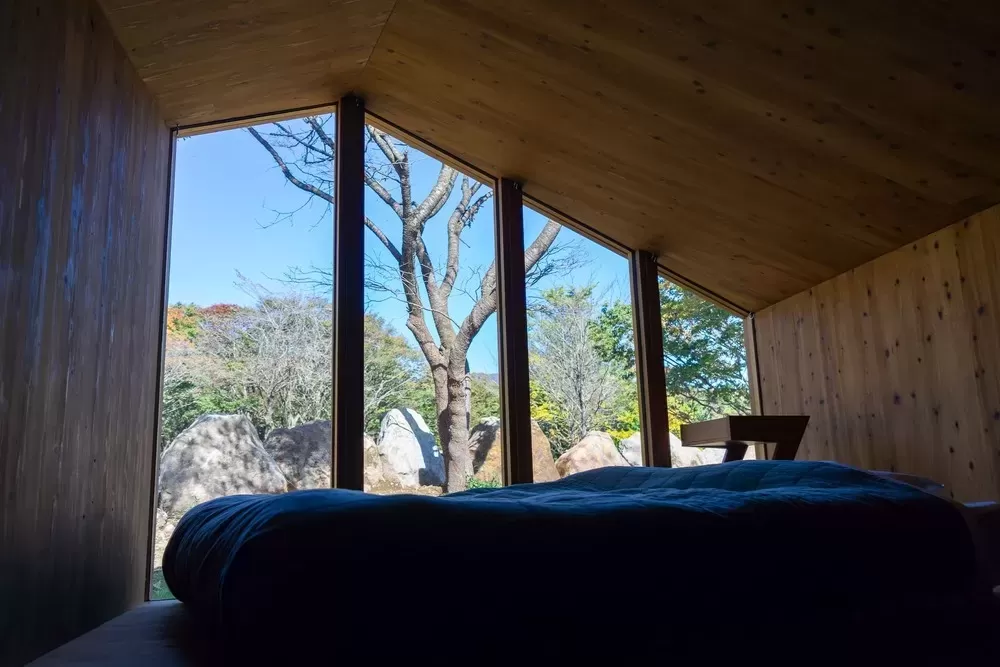全室備え付けのプライベートサウナと那須湯本の温泉を楽しめるEarthboat。キャンプやグランピングのように自然を身近に感じながらも、快適さとプライベート性を大切にした滞在体験を提供します。 サウナ着のまま敷地を歩き、森林浴や那須湯本の硫黄泉に浸かる。空をぼんやり眺めて頭を空っぽにする。そんな場所です。